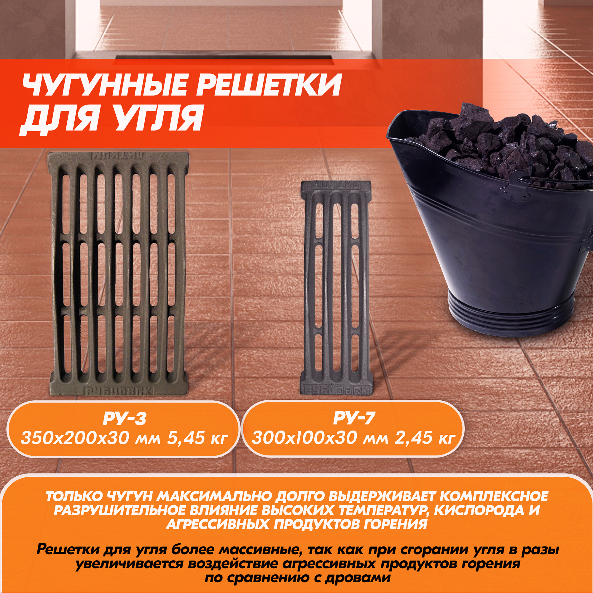 Колосниковые решетки для угля могут, также как и колосники для дров, устанавливаться в отопительные печи, печи для бани и сауны, кирпичные печи, а также в металлические печи.