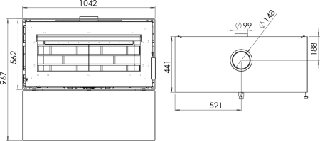 Печь-камин Дунай оснащена всеми современными характеристиками: система воздушной очистки стекла, система вторичного дожига газов, система подачи воздуха из «вне», возможность подключения дымохода сверху либо сзади. Максимальная длина дров 380 мм.